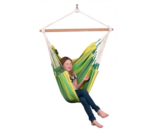 Le standard selon La Siesta pour les chaises hamac en coton. Un modèle bien né et très qualitatif avec ses nombreuses astuces :