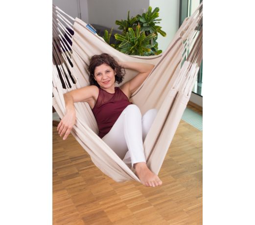 Pour les amateurs de produits 100% naturels qui sont en même temps beaux et de qualité. On retrouve bien sur sur cette chaise suspendue géante les marques de fabrique de La Siesta : des bords renforcés, un tourbillon 360% pour la sécurité des plus petits et un tissage haute densité.