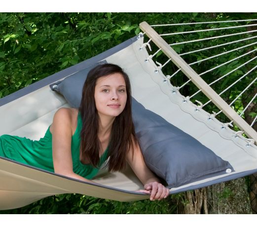 Les états du Sud des USA ont fait le premier pas en proposant de grands hamacs à baguettes aux couleurs et motifs modernes, conférant à ce modèle un style particulier.