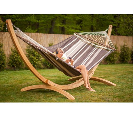 Notre hamac XXL Palacio invite aussi à rêver et à se reposer dans la couleur « café ».