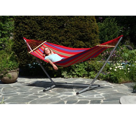 La meilleure vente de hamac à barre : le Aruba est en Elltex, un matériau résistant aux UV et aux intempéries et procure un bon niveau de confort pour un budget très raisonnable.