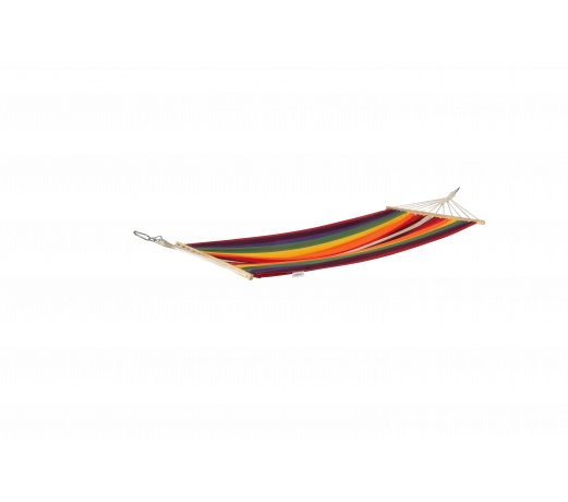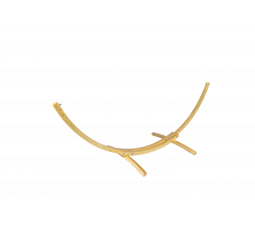Un ensemble avec une toile de hamac de 270 cm sur un support en bois de 300 cm. Le fil de trame du hamac a été étudié afin de donner un aspect chatoyant à la toile du hamac.