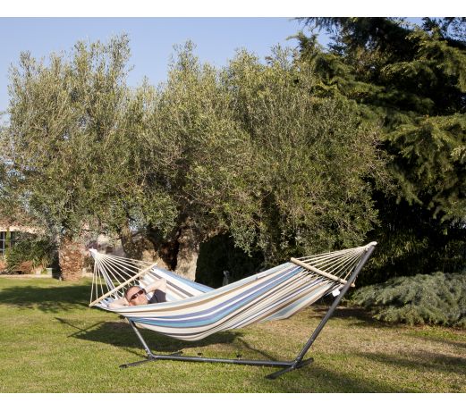Le support Sagay est d'excellente qualité et dédié aux hamacs simples de 275 à 335cm à barre ou sans barre.