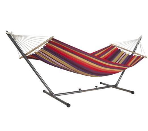 Ce set s'appuie d'une part sur le hamac Mansalay qui est un produit à prix doux procurant un grand confort grace à ses dimmensions généreuses, et sur un support règlable très prisé de nos clients d'autre part.