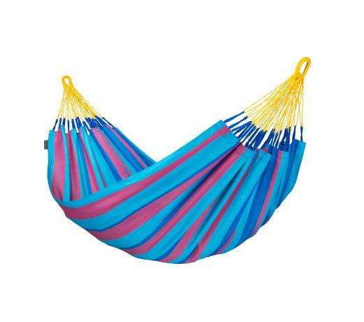Depuis sa création en 2012, la collection Sonrisa fait un Tabac. Ce hamac simple peut dormir dehors sans s'abimer et seche vite en cas de pluie ou de rosée grace à sa fibre hamactex résistante aux UV et intempéries.